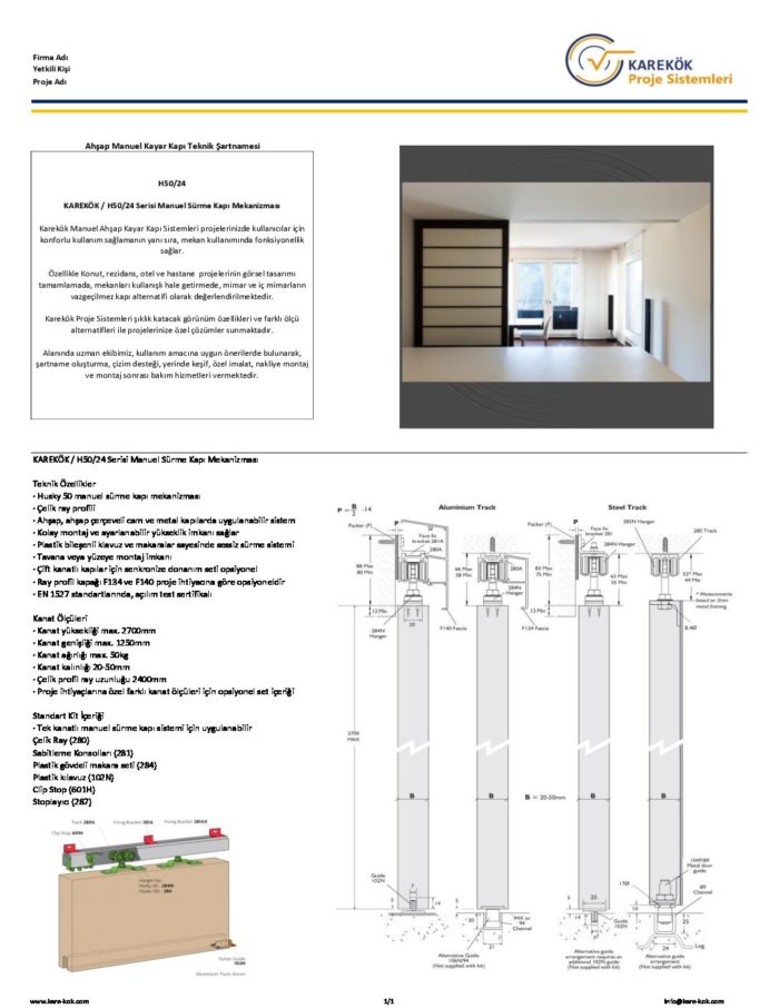 KAREKÖK H50/24 Serisi Manuel Kayar Kapı Mekanizması Teknik Doküman